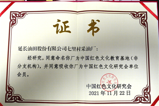 延長石油七里村采油廠被授予“中國紅色文化教育基地”