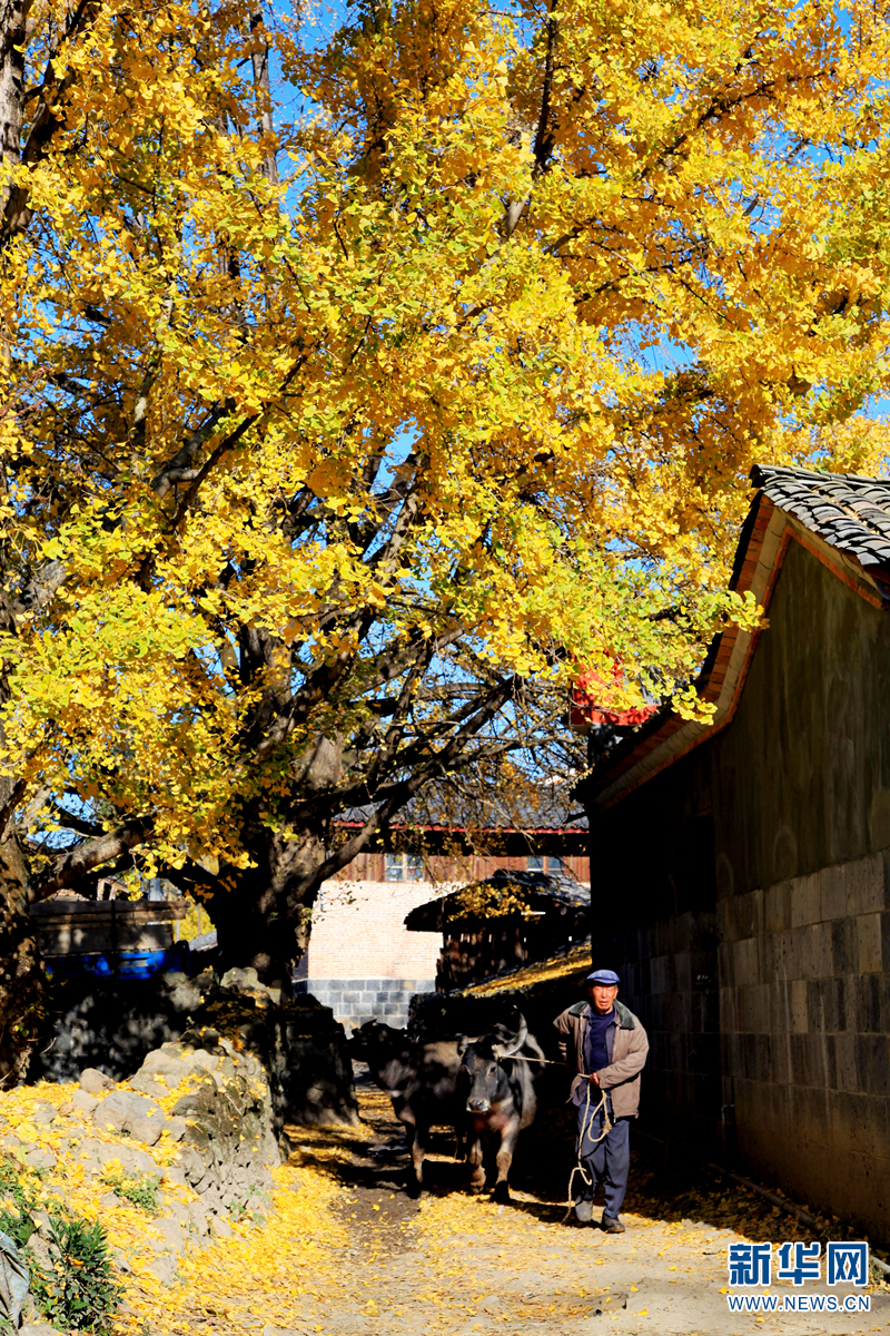 冬日里的“銀杏村”,人與景相融(11月27日攝)。新華網(wǎng)發(fā)(李黎 攝)