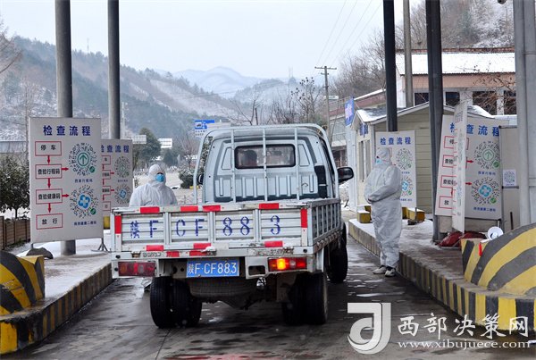 12月26日,寧強(qiáng)縣漢源街道辦工作人員正在黃壩驛檢測點(diǎn)查驗(yàn)車輛和人員