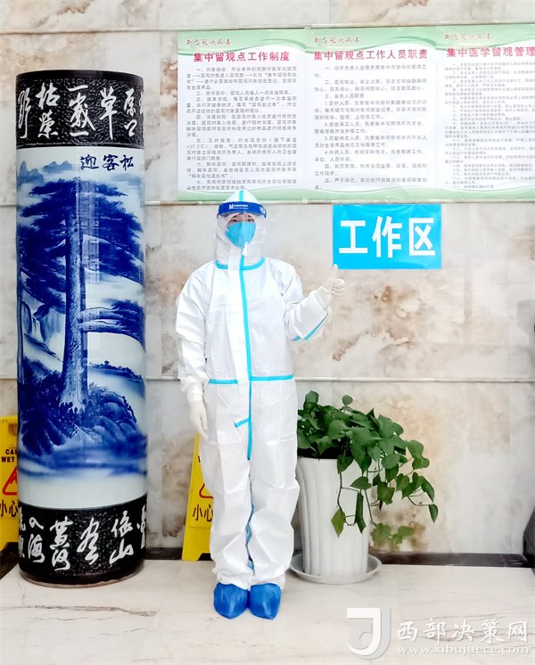 每天,她和隊員們穿著防護服24小時為隔離群眾掃碼、檢測體溫、遞送三餐、詢問留觀人員狀況、規(guī)范醫(yī)療廢棄物處置。夜深人靜時,在賓館大廳和走廊間,時常可以看見她忙碌而又堅定的背影。