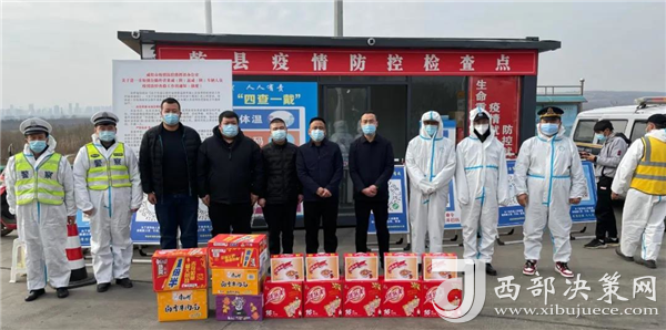 西部決策網(wǎng)訊 連日來,西安市、咸陽市疫情防控形勢嚴(yán)峻復(fù)雜,疫情防控工作進(jìn)入關(guān)鍵時(shí)期。12月30日,咸陽東匯運(yùn)輸有限公司董事長吳虛在縣交通運(yùn)輸局副局長陳航的帶領(lǐng)下前往交通運(yùn)輸局包抓小區(qū)、道路管控執(zhí)勤點(diǎn),為一線人員送去了八寶粥、方便面、奶茶等慰問品。并代表公司對(duì)交通防疫一線工作人員堅(jiān)守崗位、晝夜值守,筑牢疫情防控堅(jiān)固防線所作出的貢獻(xiàn)表達(dá)深深的謝意和敬意。