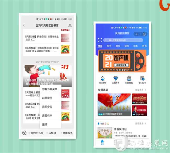 閉館不閉網(wǎng),線上服務不打烊。自12月23日閉館以來,區(qū)圖書館整合各類數(shù)字資源,免費提供豐富的線上服務,滿足不同年齡群體讀者的閱讀需求,更新“超星閱讀”APP,電子書、數(shù)字期刊、講座、繪本、聽書等海量資源為讀者提供高質(zhì)量的閱讀福利。利用“陜西數(shù)字文化網(wǎng)”“鳳翔區(qū)圖書館官方網(wǎng)站”“鳳翔區(qū)圖書館”公眾微信號,線上開設(shè)【鳳圖戰(zhàn)疫】【鳳圖薦讀】【紅色故事繪】【館員姐姐講故事】【館員有聲薦讀】【鳳圖文苑】等閱讀服務專欄,提供疫情防控知識、繪本閱讀、親子故事講讀、線上展覽等,讀者通過關(guān)注“寶雞市鳳翔區(qū)圖書館”公眾號、網(wǎng)站享受24小時線上服務,通過鳳翔區(qū)圖書館總分館群,將這些優(yōu)質(zhì)數(shù)字資源向基層分館輸送,讓廣大讀者暢享“云端閱讀”。