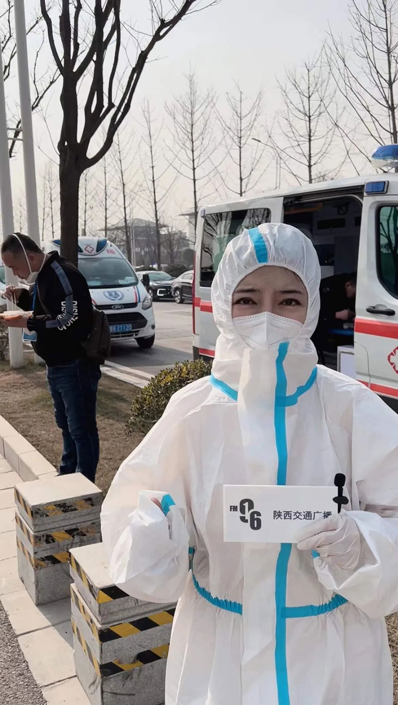 2022年1月3日,陜西廣播電視臺(tái)記者范雪在抗疫支援車輛調(diào)度指揮部采訪。
