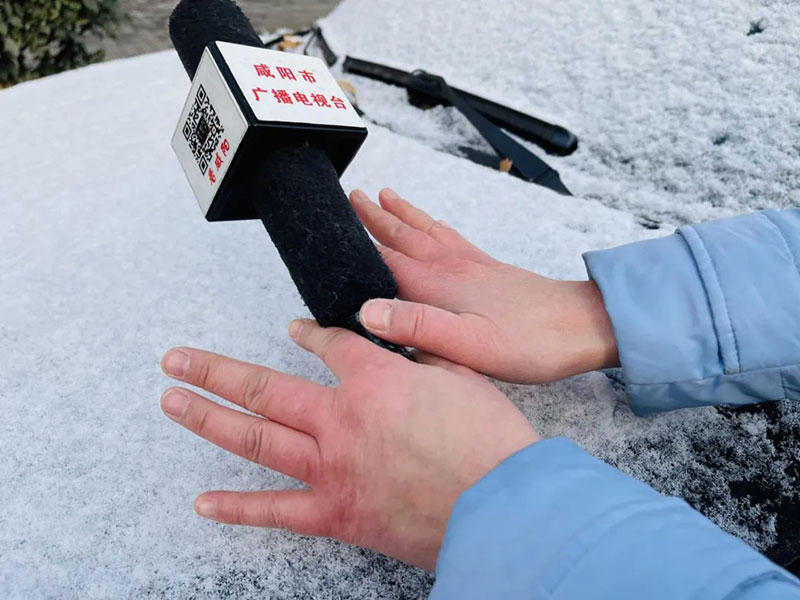 2021年12月26日,冒著風(fēng)雪嚴(yán)寒在戶外連續(xù)工作幾個(gè)小時(shí),咸陽(yáng)市廣播電視臺(tái)記者王倩的雙手凍得通紅。