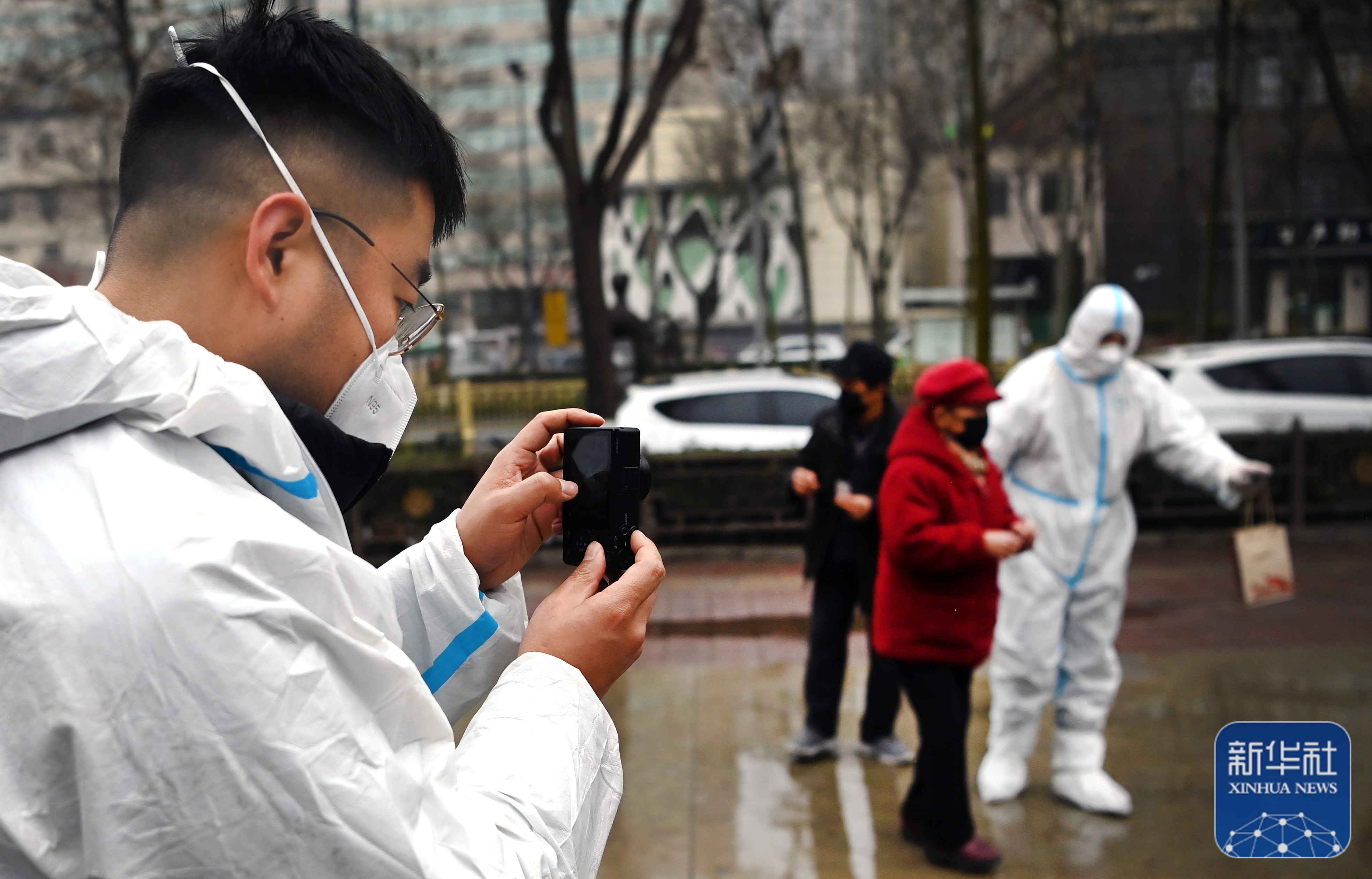 1月8日,許凱(左一)在核酸檢測(cè)現(xiàn)場(chǎng)拍攝視頻。他是一名攝影師和視頻博主。