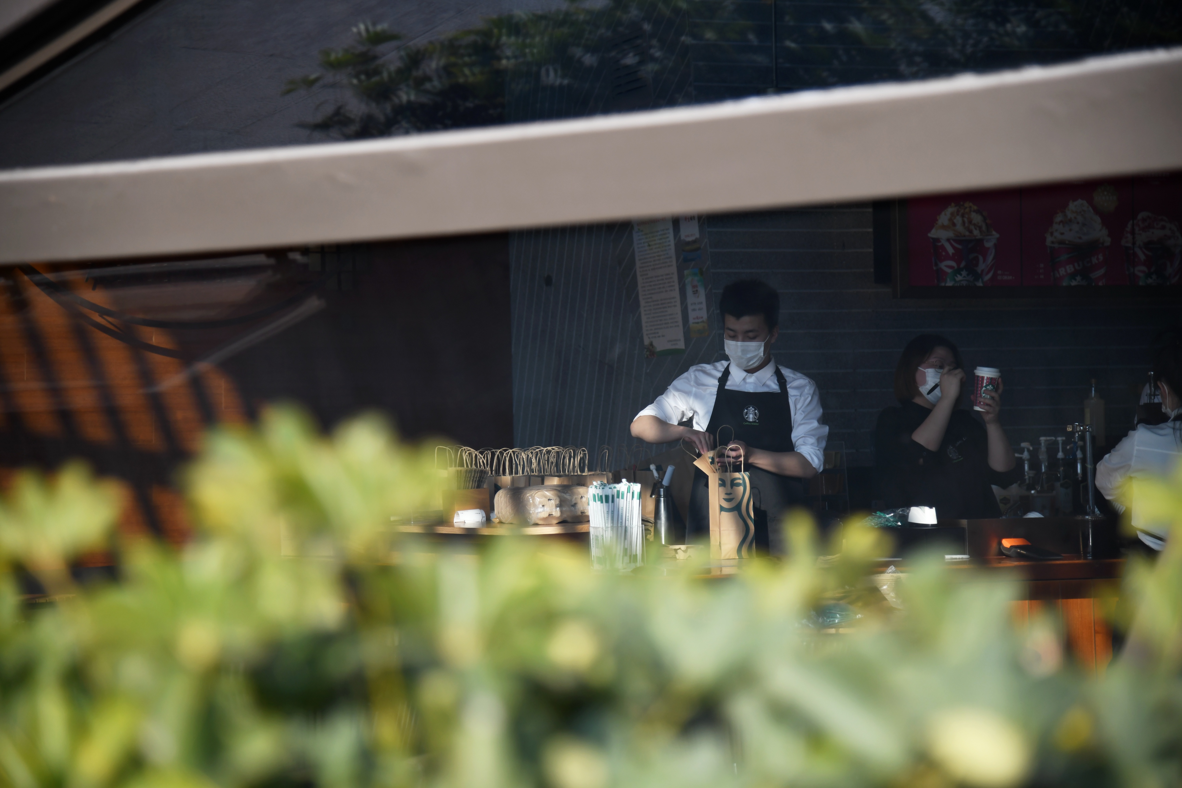西安市一家連鎖咖啡店店員正在打包外賣咖啡。新華社記者 李一博 攝