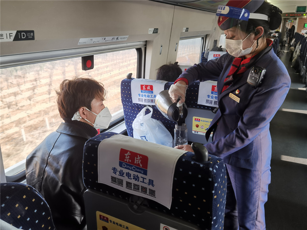 面對(duì)今年春運(yùn)疫情防控形勢(shì)和大客流安全運(yùn)輸壓力,全體高鐵乘務(wù)人員將嚴(yán)把安全關(guān),加強(qiáng)設(shè)施設(shè)備檢修維護(hù)。主動(dòng)做好疫情防控,加強(qiáng)車廂內(nèi)消毒和衛(wèi)生清掃、為旅客提供安全衛(wèi)生的餐飲產(chǎn)品,加密列車公共部位消毒頻次、科學(xué)做好發(fā)熱旅客處置、加強(qiáng)旅客防護(hù)用品佩戴提醒等,用心為旅客服務(wù),讓旅客平安健康出行。