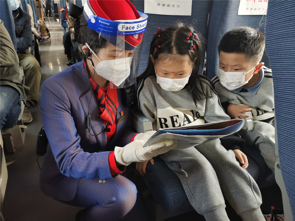 西安“高鐵先鋒”給乘車的小朋友介紹乘車安全知識(shí)。