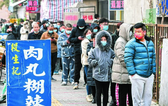 ▲1月20日,市民在西安市未央區(qū)一家小吃店前排隊購買食品。自1月19日起,西安市曲江新區(qū)、未央區(qū)、經開區(qū)、浐灞生態(tài)區(qū)、國際港務區(qū)陸續(xù)迎來解封。新華社記者陶明攝