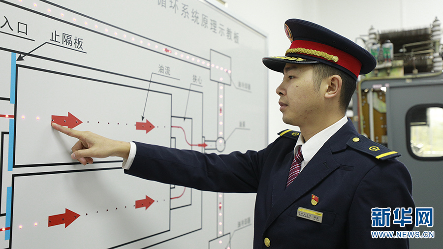 成為鐵路人是胡堅一直以來的夢想,2013年,90后的胡堅來到中國鐵路昆明局集團有限公司昆明機務(wù)段開始了“逐夢之旅”。(新華網(wǎng) 范芳鈺/文 劉東/攝)