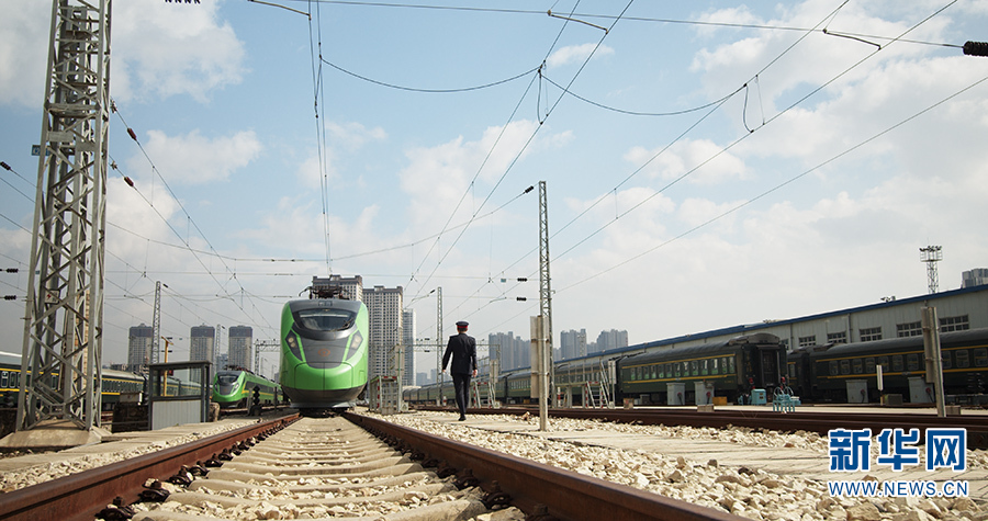 2019年8月,胡堅聽說昆明至河口即將開行“復(fù)興號”動車組列車,憑著自己多年值乘這條線路的經(jīng)驗以及嫻熟的技術(shù)水平,爭取到了駕駛新型機車的機會,如愿以償成為一名“復(fù)興號”動車組司機。由于他技術(shù)過硬,很快成為車隊中堅力量。(新華網(wǎng) 范芳鈺/文 劉東/攝)