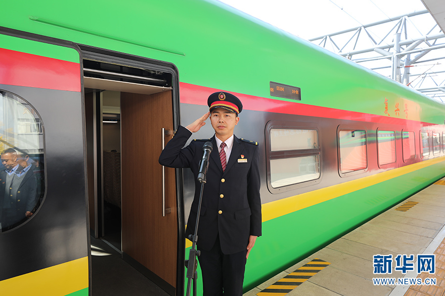 2021年12月3日,中老鐵路正式通車,開辟了中國國際鐵路運輸新紀元,那一天,胡堅站在站臺上,代表中國鐵路火車司機請示發(fā)車。(新華網(wǎng) 范芳鈺/文 昆明機務(wù)段供圖)