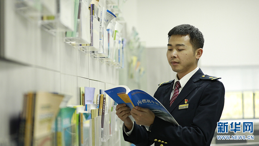 云南山多、彎多,且橋梁多、曲線多、坡度大,在這樣的山區(qū)鐵路上,把火車開得平穩(wěn)可不是一件容易事兒。于是胡堅每次上班都帶著專業(yè)書籍,一有時間就拿出來翻,遇到不懂的就追著師父楊學(xué)仁問。(新華網(wǎng) 范芳鈺/文 劉東/攝)