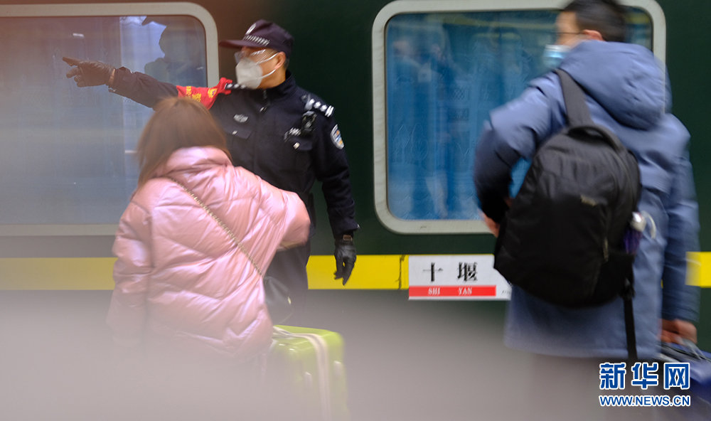 “請大家看好隨身物品,依次上車,不要擁擠。”2月7日是節(jié)后返程客流高峰時刻,當(dāng)天11:20許,在湖北十堰火車站站臺,一位聲音洪亮、神采奕奕的乘警來回走在列車旁,一邊維護乘車秩序,一邊提醒乘客有序上車。