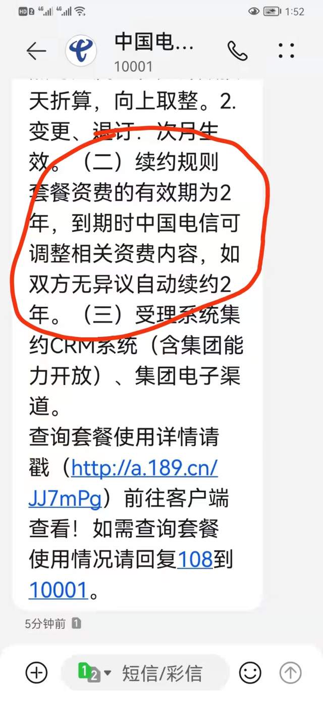 我當(dāng)時(shí)辦理業(yè)務(wù)的時(shí)候,電信業(yè)務(wù)員給我說的是套餐兩年不變,也沒說不能轉(zhuǎn)網(wǎng)。而且我的套餐詳情里續(xù)約規(guī)則顯示套餐資費(fèi)的有效期為2年,到期時(shí)中國電信可調(diào)整相關(guān)資費(fèi)內(nèi)容,如雙方無異議自動(dòng)續(xù)約2年。