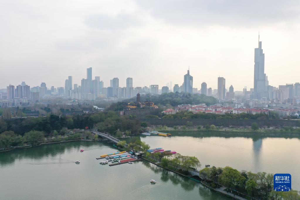 這是3月23日拍攝的南京春色(無人機(jī)照片)。新華社記者 季春鵬 攝