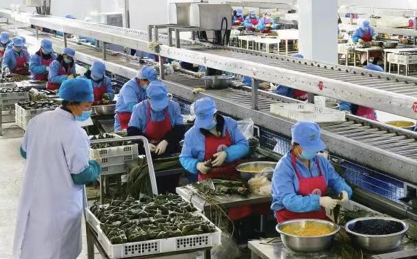 “粽子產(chǎn)業(yè)園投產(chǎn)不到幾天,就接到北京、上海、天津、內(nèi)蒙古等地客戶的300萬只粽子訂單,其中30%來自網(wǎng)絡(luò)平臺。”張新文說。