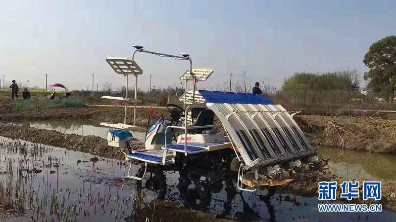 圖為無(wú)人自動(dòng)插秧機(jī)。新華網(wǎng)發(fā) 陳振亮攝
