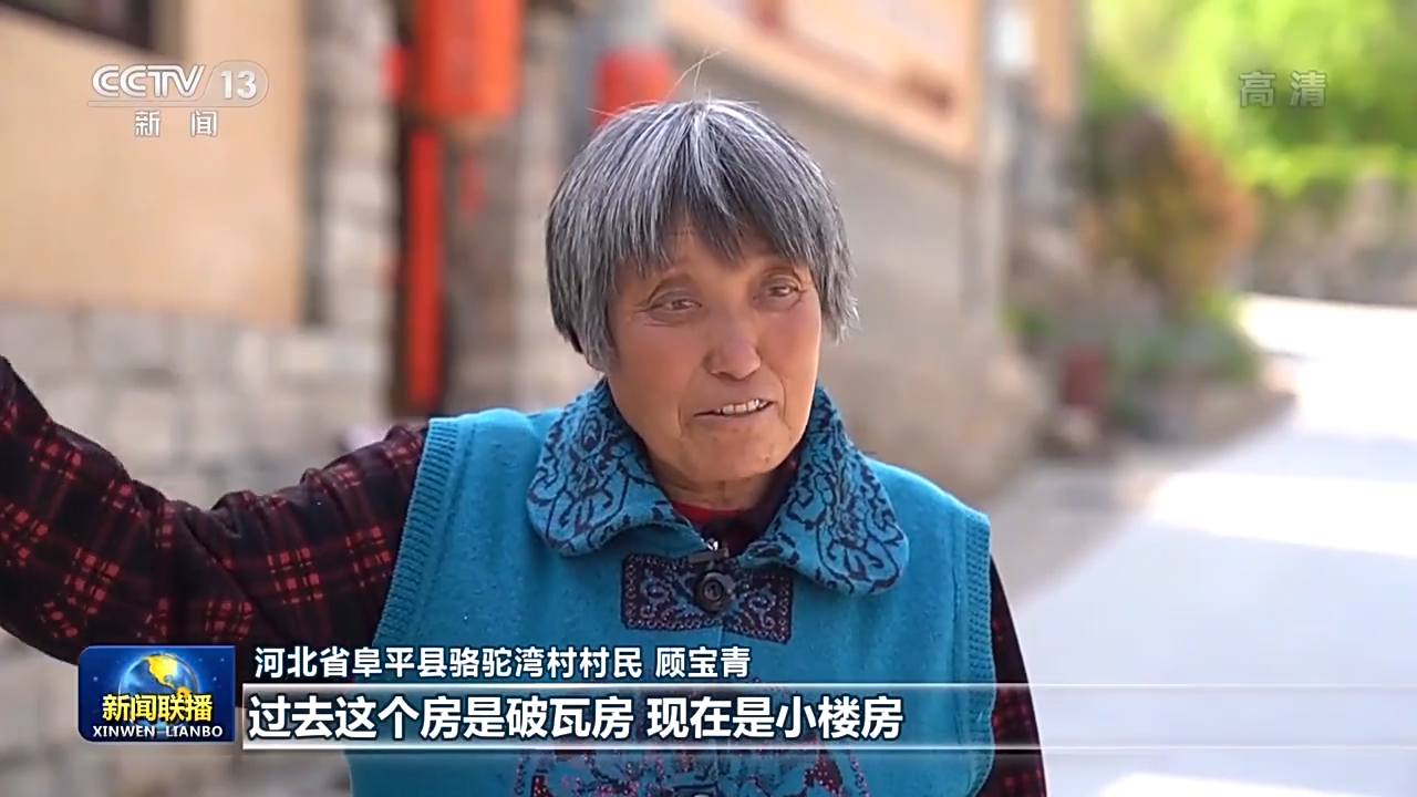 河北省阜平縣駱駝灣村村民 顧寶青:過去這個房是破瓦房,現(xiàn)在是小樓房。過去路是土路,現(xiàn)在是柏油路。日子越過越紅火,感謝黨中央的好政策。
