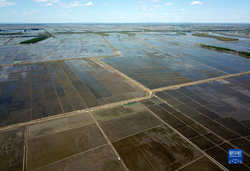 這是5月18日拍攝的北大荒集團七星農(nóng)場有限公司的稻田(無人機照片)。新華社記者 王建威 攝