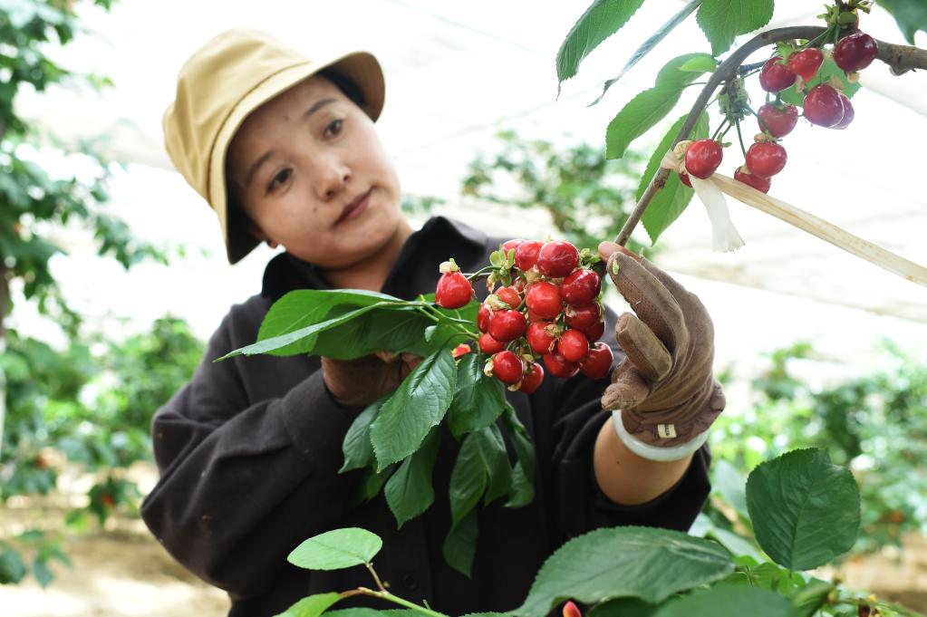 新華社拉薩6月16日電(記者范帆)初夏時(shí)節(jié),走進(jìn)西藏自治區(qū)尼木縣吞彌現(xiàn)代農(nóng)業(yè)產(chǎn)業(yè)園的溫室大棚,紅如瑪瑙的車?yán)遄庸麑?shí)綴滿枝頭,空氣中處處彌漫著清新的果香。摘下一顆飽滿透亮的車?yán)遄?,一口咬下后汁水四溢,香甜的口感溢滿唇齒之間。