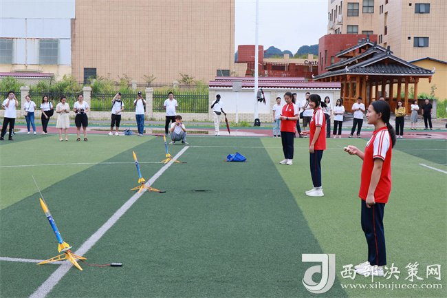 融水思源實(shí)驗(yàn)學(xué)校學(xué)生展示制作好的小火箭