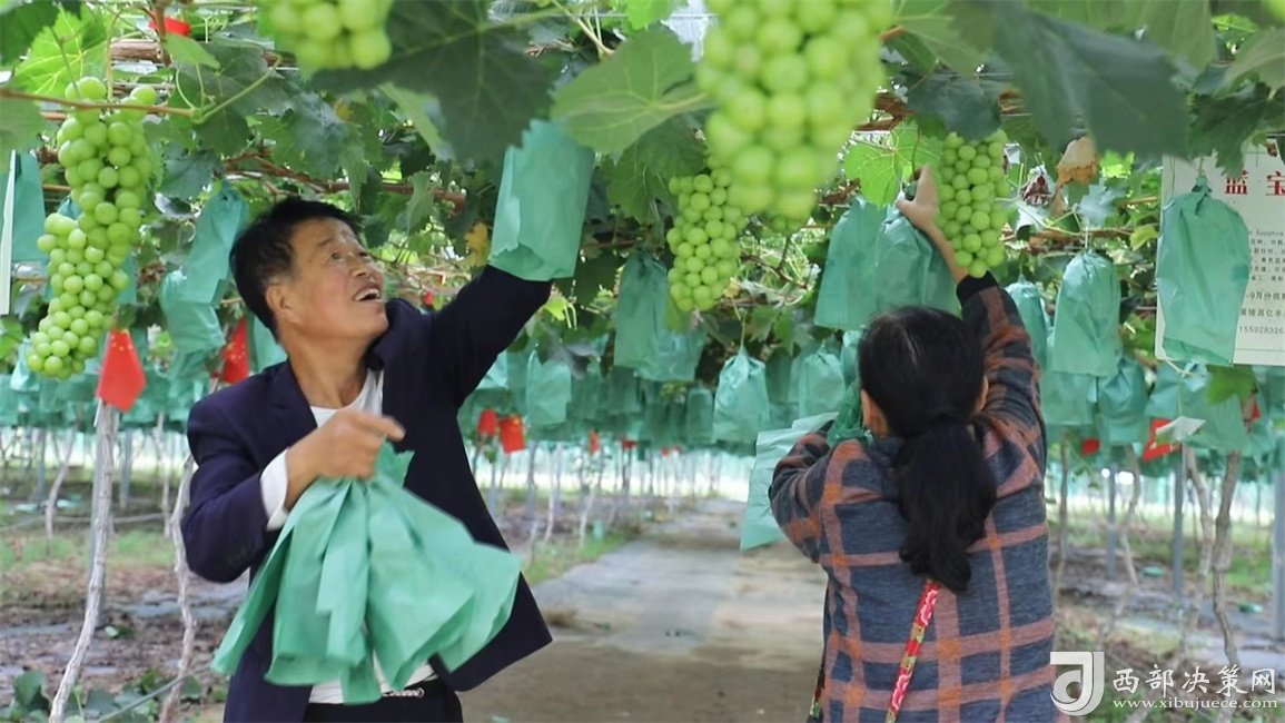 西部決策網 初秋時節(jié),來到黃陵縣阿黨鎮(zhèn)北村億豐玫瑰葡萄園內,滿園的豐收景象,禁不住讓人喜上眉梢。藤架上,一串串晶瑩剔透的果實透著陽光的味道,令人口舌生津、垂涎欲滴,咬一顆放進口中,香甜的汁液溢滿舌尖,幸福的甜蜜充滿周身……