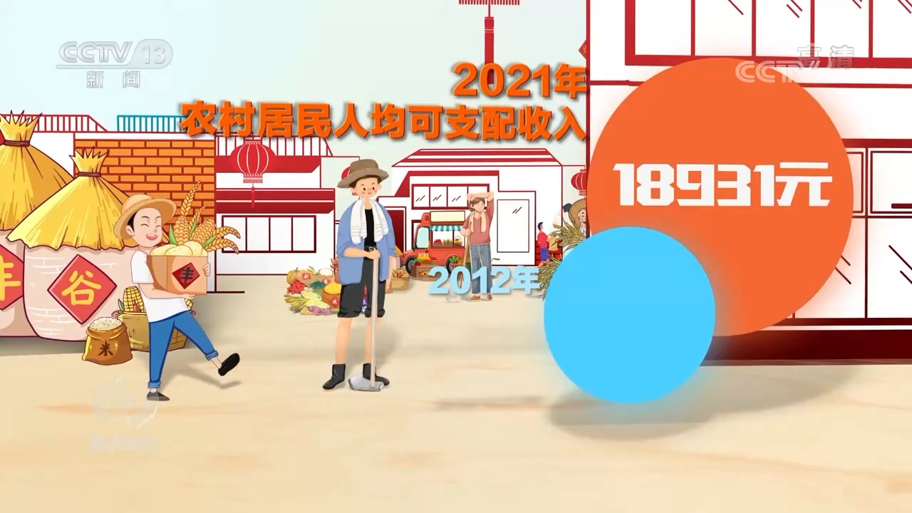 2021年,農(nóng)村居民人均可支配收入18931元,比2012年翻了一番多,這背后是大力發(fā)展的鄉(xiāng)村產(chǎn)業(yè),每個(gè)脫貧縣都打造了2-3個(gè)主導(dǎo)產(chǎn)業(yè),產(chǎn)業(yè)振興是鄉(xiāng)村振興的重中之重。從只賣農(nóng)產(chǎn)品本身到不斷增加附加值,我國(guó)農(nóng)產(chǎn)品加工轉(zhuǎn)化率達(dá)到了70.6%。越來越豐富的農(nóng)產(chǎn)品通過網(wǎng)絡(luò)賣到千家萬戶,農(nóng)產(chǎn)品網(wǎng)絡(luò)零售額超過4200億元。與此同時(shí),農(nóng)村一二三產(chǎn)業(yè)不斷融合,累計(jì)創(chuàng)建了140個(gè)優(yōu)勢(shì)特色產(chǎn)業(yè)集群、250個(gè)國(guó)家現(xiàn)代農(nóng)業(yè)產(chǎn)業(yè)園,其中,鄉(xiāng)村旅游產(chǎn)業(yè)每年?duì)I業(yè)收入也已經(jīng)超過7000億元。在這些產(chǎn)業(yè)的助力下,老鄉(xiāng)們的小康生活,還在繼續(xù)。