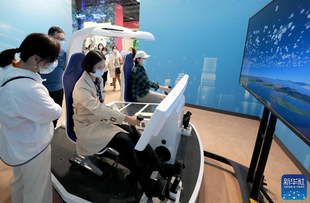 10月7日,觀眾在“奮進(jìn)新時(shí)代”主題成就展上體驗(yàn)操縱直升機(jī)訓(xùn)練模擬器。當(dāng)日是國(guó)慶長(zhǎng)假的最后一天,大批觀眾來(lái)到北京展覽館參觀“奮進(jìn)新時(shí)代”主題成就展。新華社記者王毓國(guó) 攝