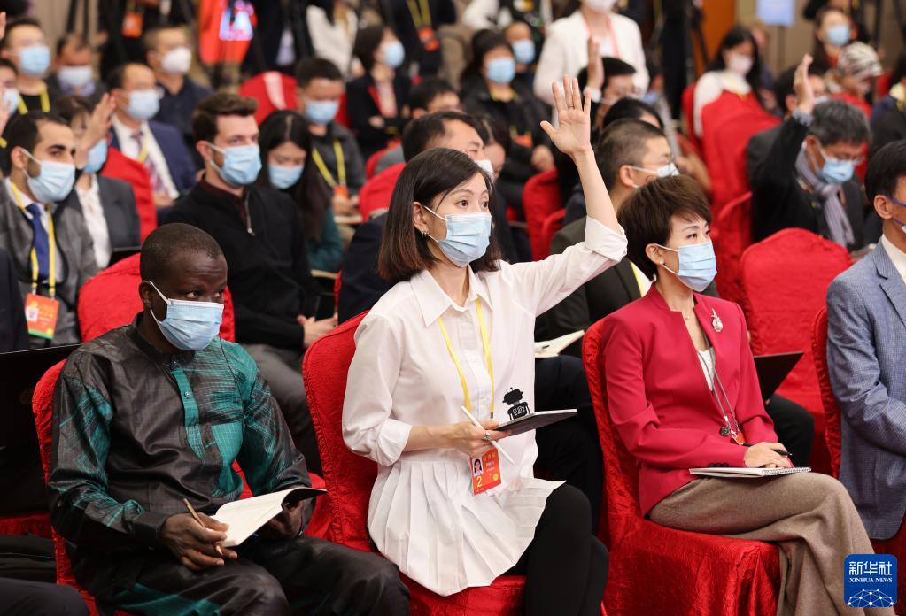 這是記者在分會場舉手提問。新華社記者 李明 攝