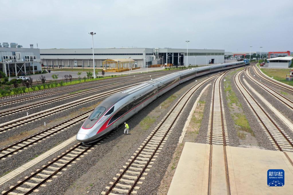 在位于山東青島的中車四方股份公司,一輛復(fù)興號(hào)列車正在出廠(2021年7月1日攝)。新華社發(fā)