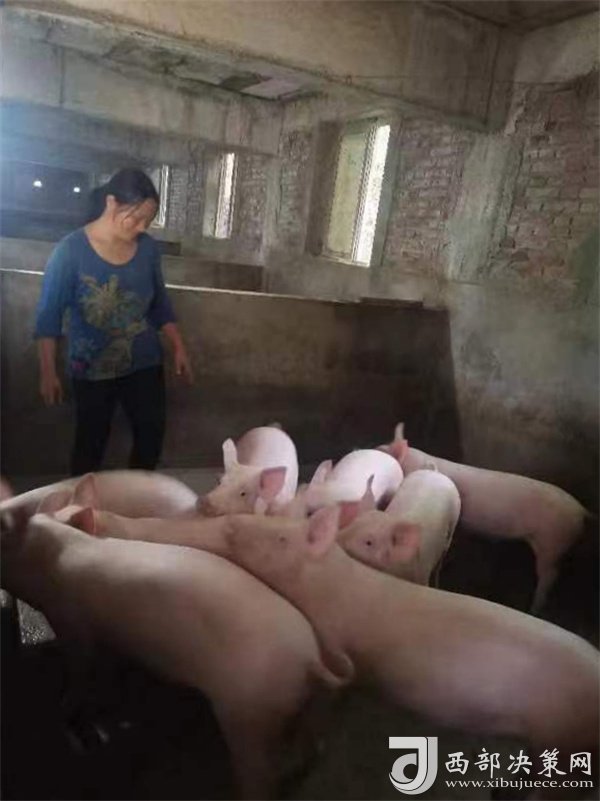 陽平關鎮(zhèn)伍家壩村的村民正在圈舍喂豬。