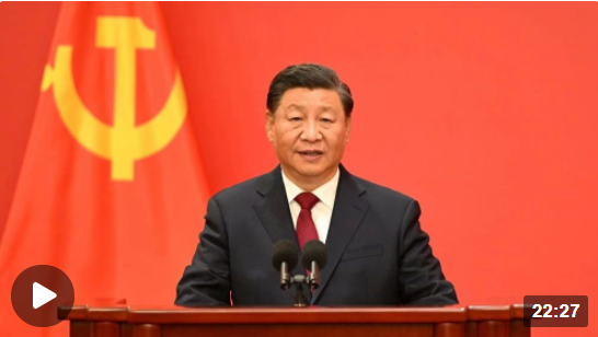 在中國共產(chǎn)黨第二十屆中央委員會第一次全體會議上當(dāng)選的中共中央總書記習(xí)近平和中共中央政治局常委李強(qiáng)、趙樂際、王滬寧、蔡奇、丁薛祥、李希,23日中午在人民大會堂同采訪中共二十大的中外記者見面。習(xí)近平發(fā)表重要講話。