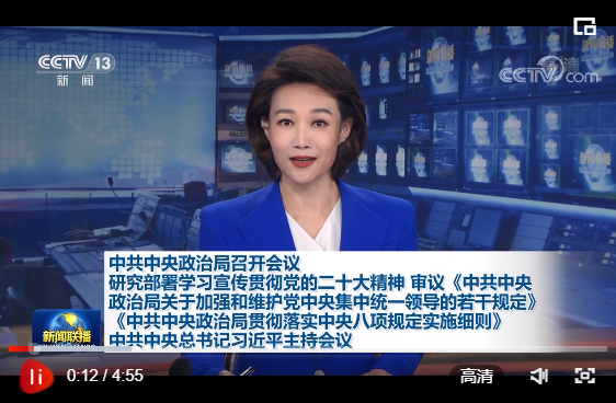 二十屆中共中央政治局10月25日召開會議,研究部署學(xué)習(xí)宣傳貫徹黨的二十大精神,審議《中共中央政治局關(guān)于加強和維護黨中央集中統(tǒng)一領(lǐng)導(dǎo)的若干規(guī)定》《中共中央政治局貫徹落實中央八項規(guī)定實施細則》。中共中央總書記習(xí)近平主持會議。