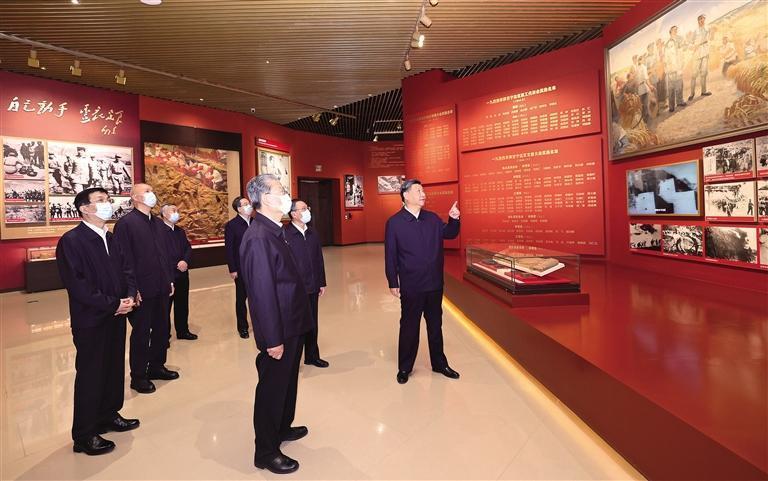 10月27日,中共中央總書記、國家主席、中央軍委主席習近平帶領(lǐng)中共中央政治局常委李強、趙樂際、王滬寧、蔡奇、丁薛祥、李希,瞻仰延安革命紀念地。這是習近平等在延安革命紀念館,參觀《偉大歷程——中共中央在延安十三年歷史陳列》。 新華社記者 鞠鵬攝
