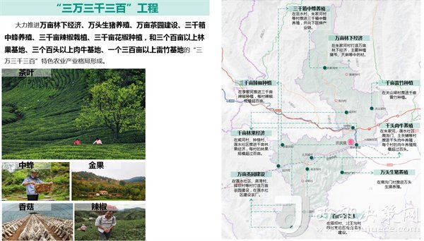 做強(qiáng)一產(chǎn),做優(yōu)特色農(nóng)業(yè)。大力推進(jìn)“三萬(wàn)三千三百”(萬(wàn)畝林下經(jīng)濟(jì)、萬(wàn)頭生豬養(yǎng)殖、萬(wàn)畝茶園建設(shè);三千箱中蜂養(yǎng)殖、三千畝辣椒栽植、三千畝花椒種植;三個(gè)百畝以上林果基地、三個(gè)百頭以上肉?;?、一個(gè)三百畝以上雷竹基地)工程及“一村一品”工程,形成特色農(nóng)業(yè)產(chǎn)業(yè)格局。