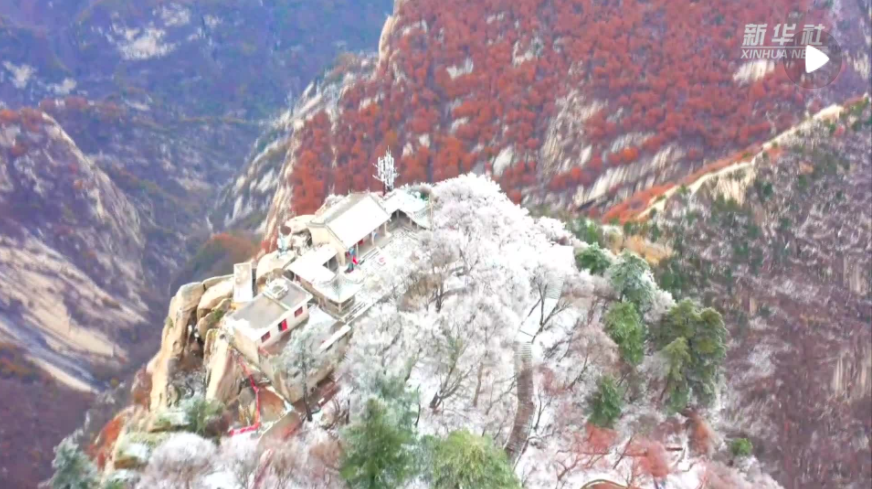 11月11日晚至12日凌晨,陜西華山景區(qū)迎來今冬首場降雪,紛紛揚揚的雪花為西岳華山披上一層晶瑩的薄衣。雪后華山銀裝難掩蒼翠,峻秀挺拔又清朗多姿。