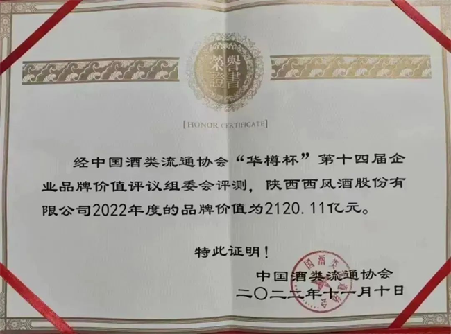 西部決策網(wǎng)訊(記者艾米杰 韓宗憲 通訊員 彭靜宜 張桓瑞)2022年11月10日,“華樽杯”第十四屆中國酒類企業(yè)品牌價值暨第五屆國際酒類產(chǎn)品品牌價值發(fā)布會在貴陽舉行。西鳳酒以2120.11億元的品牌價值名列中國白酒品牌榜前列,被授予“中國最受歡迎鳳香型白酒品牌”“全球烈酒十強品牌”“中國陜西省白酒品牌價值第一名”等多項榮譽。西鳳酒從首屆“華樽杯”的69.23億元到如今的2120.11億元,14年間,西鳳品牌價值增長31倍。“紅西鳳”榮獲2022年度“華樽杯”最受歡迎鳳香型白酒品牌,2022年度品牌價值高達1228.78億元。