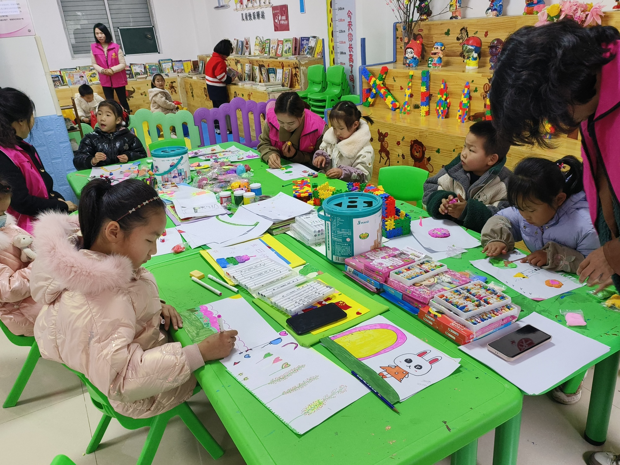 記者走進婦女兒童之家,志愿者們正帶領(lǐng)一群小朋友,有的指導(dǎo)繪畫,有的講繪本故事,有的在陪孩子們玩玩具。“我是咱社區(qū)幼兒園的老師,自愿申請來到這里。我們這有14個志愿者,大家利用空閑時間來陪伴這些留守兒童。”志愿者黃顏筱介紹道,“一般放學后等兩個小時左右家長們就都接走了。”