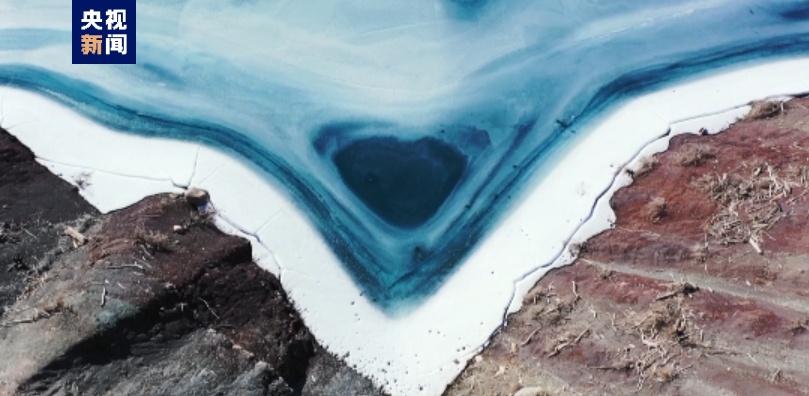 尤其令人驚嘆的是在湖的北邊,融化的湖水形成了一個(gè)自然的“海藍(lán)之心”,十分罕見(jiàn),讓人驚嘆大自然的神奇。