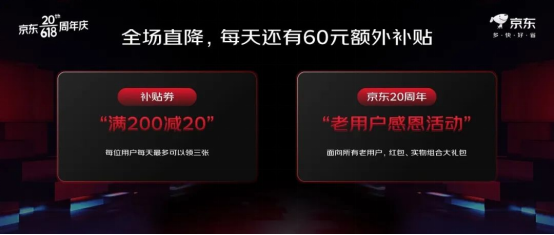 此外,今年京東618還推出了“京東20年 一路相伴”老用戶感恩活動(dòng),為所有京東老用戶帶來(lái)福利。針對(duì)京東PLUS會(huì)員用戶,京東618也推出了“618京東PLUS會(huì)員超級(jí)卡”等專屬福利。