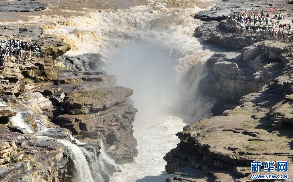 暑期,眾多游客來到位于陜西宜川縣和山西吉縣交界處的黃河壺口瀑布游覽,領略壺口瀑布美景。