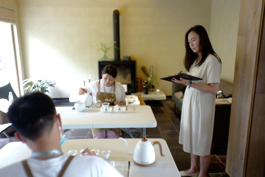 學員在莫干山民宿管家培訓中心內(nèi)進行茶藝考核。新華社記者徐中哲 攝