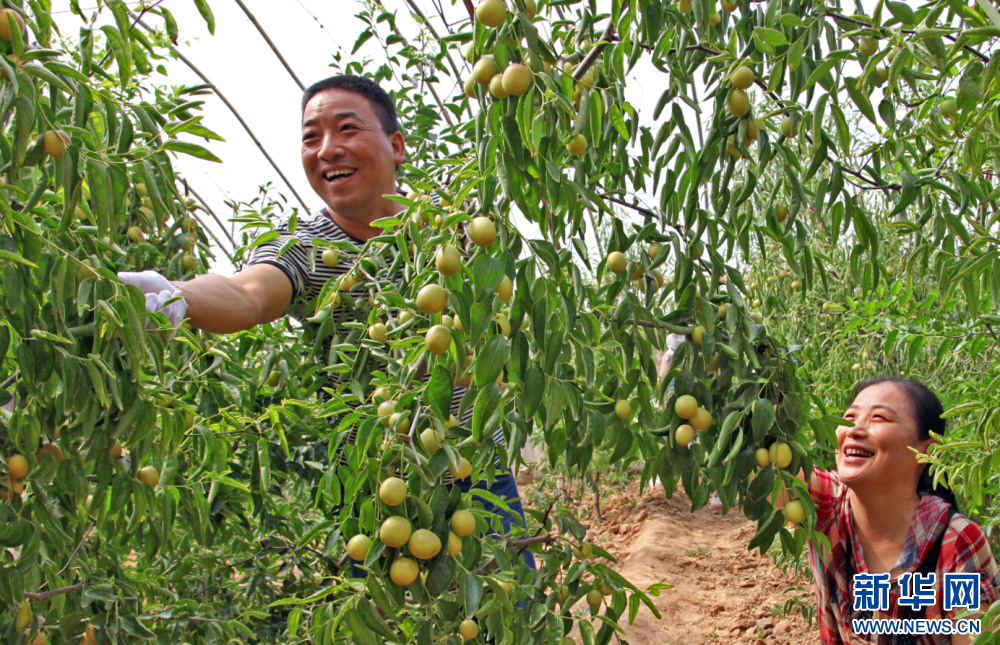 位于大荔縣安仁鎮(zhèn)小坡村的萬(wàn)畝冬棗產(chǎn)業(yè)園區(qū)。 新華網(wǎng)發(fā) 高國(guó)哲攝