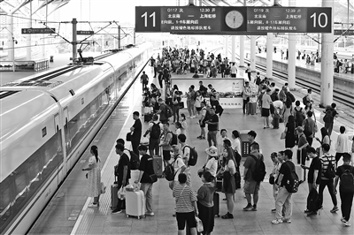 圖為當(dāng)日旅客在徐州東站站臺(tái)候車(chē)。新華社記者 毛俊 攝