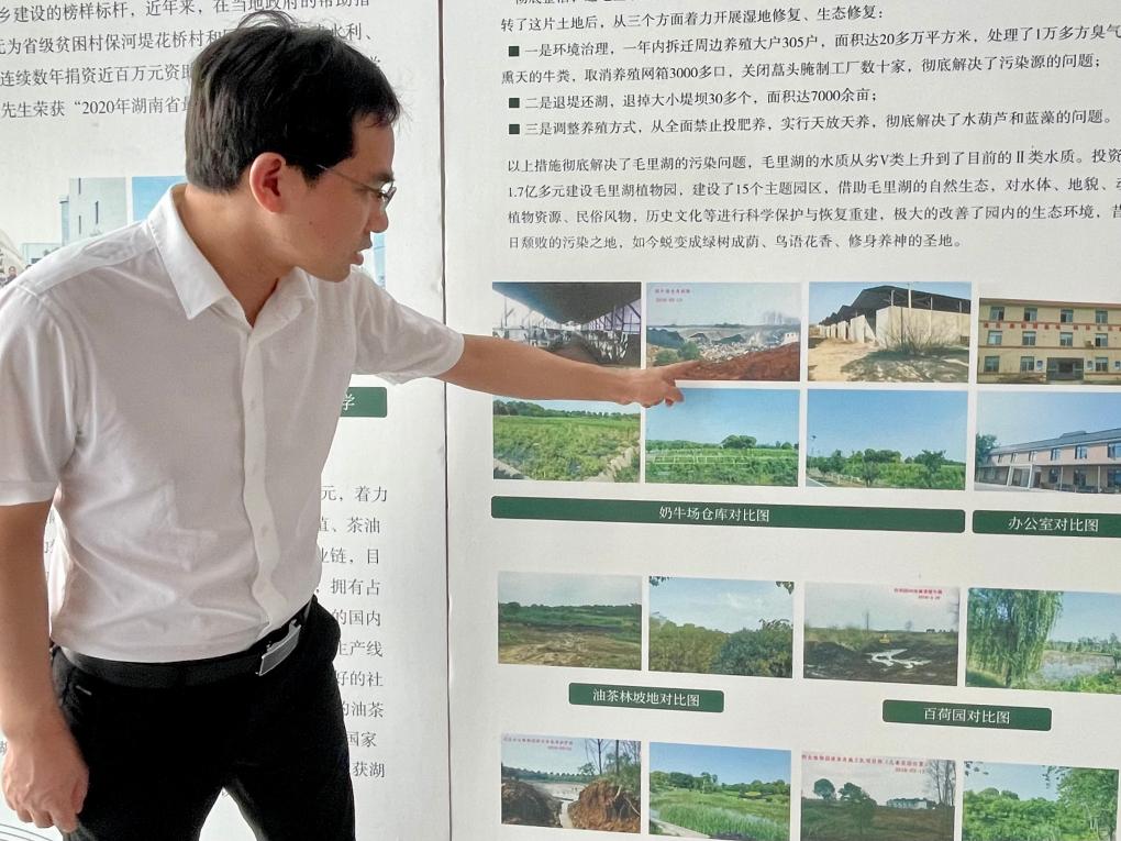 毛里湖國(guó)家濕地公園管理處主任彭敏說(shuō):“當(dāng)年湖區(qū)大搞網(wǎng)箱養(yǎng)殖。成噸成噸地投肥養(yǎng)魚(yú),成片成片地?cái)r網(wǎng)筑壩。加上環(huán)湖工農(nóng)業(yè)生產(chǎn)、居民生活污水直排,毛里湖生態(tài)環(huán)境最差的時(shí)候,一些水域一年四季綠藻、水葫蘆瘋長(zhǎng),水不能喝了,泳不能游了,連水牛都嫌臟不愿意下湖。水質(zhì)一度降至Ⅴ類(lèi)甚至劣Ⅴ類(lèi),生態(tài)系統(tǒng)瀕臨崩潰。”