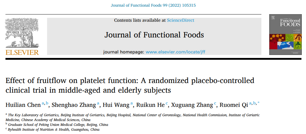 此次湯臣倍健申報的新絡(luò)素片,以Fruitflow®(輕絡(luò)素)針對中國人群血流健康影響的臨床驗(yàn)證及相關(guān)機(jī)制研究,填補(bǔ)了國內(nèi)該功能評價體系的空白,研究成果相繼發(fā)表在《JournalofFunctionalFoods》《FrontiersinNutrition》等國際權(quán)威雜志。