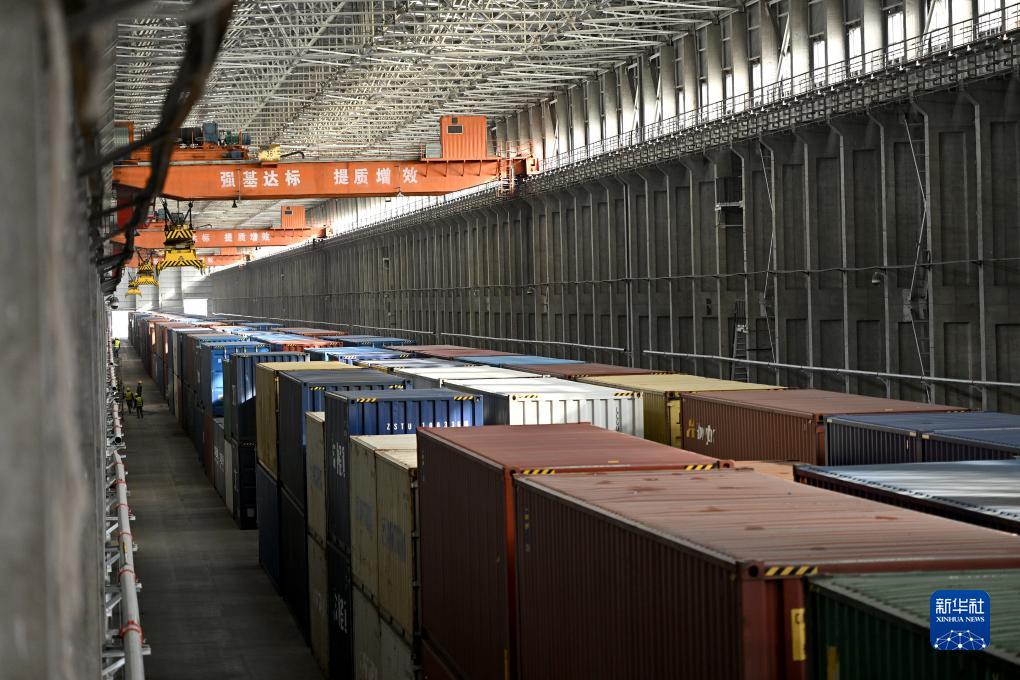 這是中國(guó)鐵路烏魯木齊局集團(tuán)有限公司阿拉山口站換23集裝箱換裝庫(kù)(11月4日攝)。新華社記者 李鑫 攝