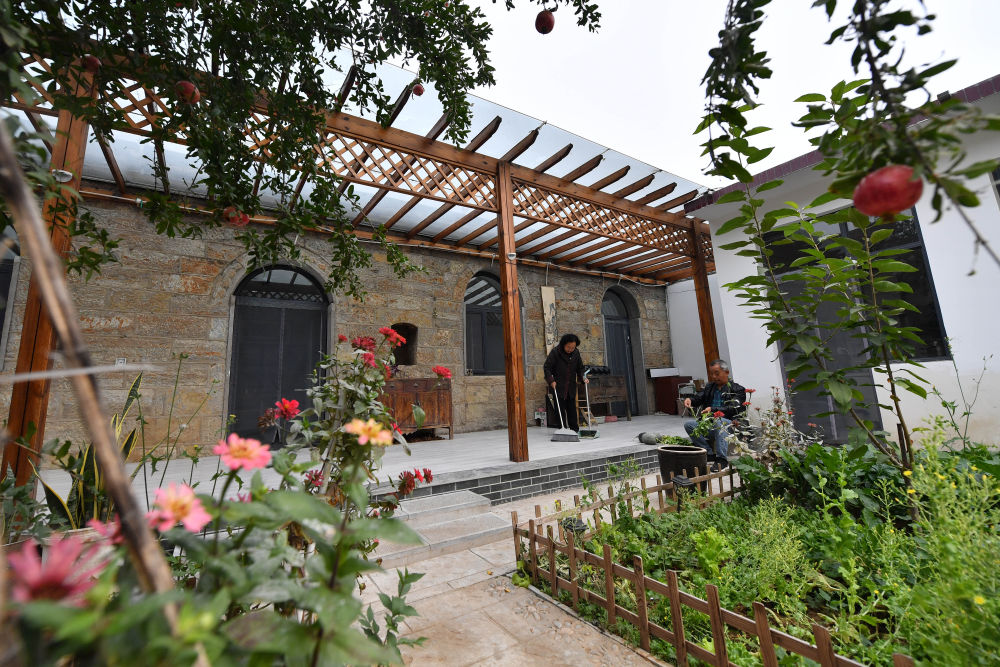 ↑村民在石家莊市鹿泉區(qū)岸下村一處民宿小院收拾家務(wù)(10月12日攝)。