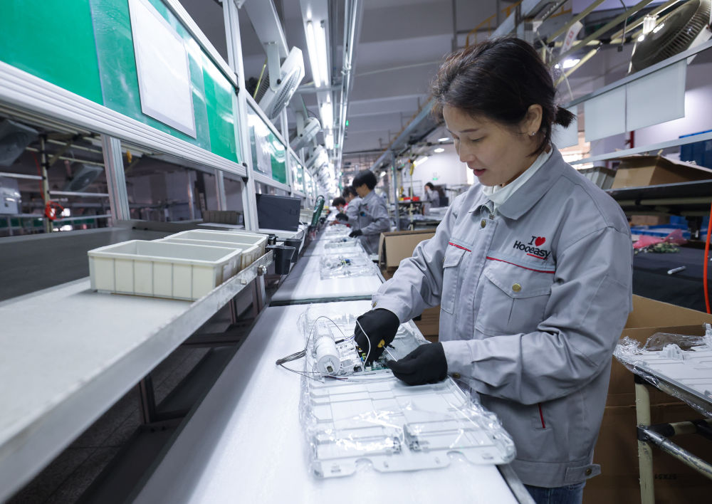 2月19日,工人在位于浙江金華市金義新區(qū)的浙江好易點科技股份有限公司車間內組裝智能晾衣機。據(jù)介紹,該公司已形成年產(chǎn)智能晾衣機100萬套生產(chǎn)能力。新華社記者 徐昱 攝